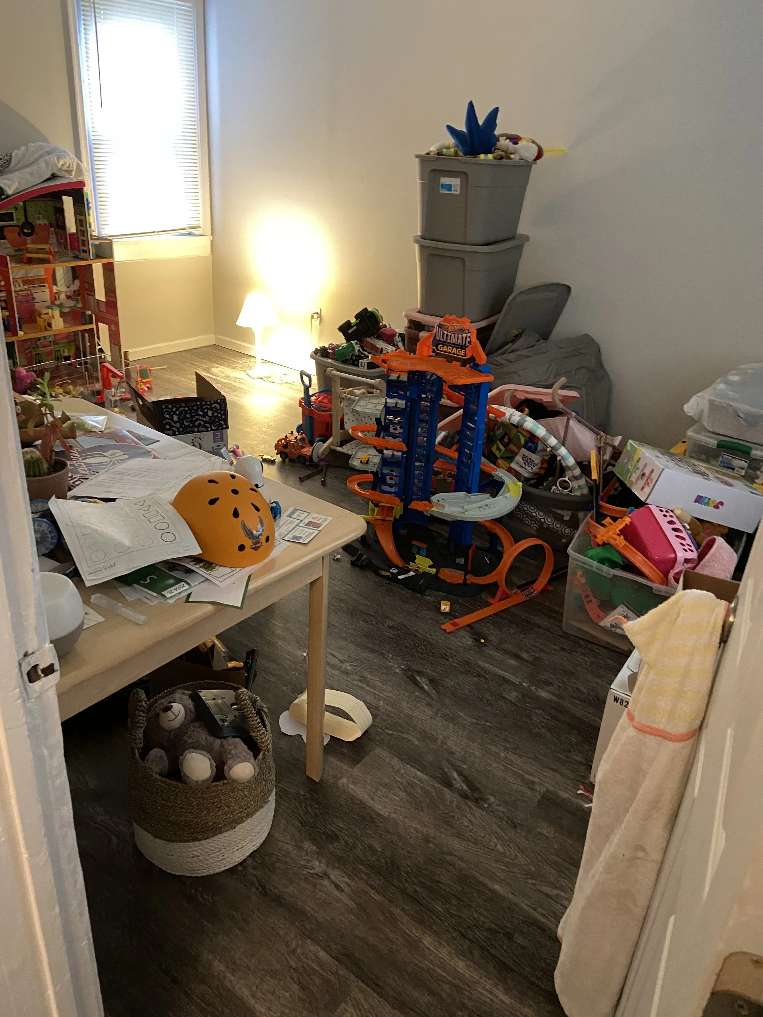 “Kim turned a disaster into something functional, so I can't sing her praises enough. Is it going to stay like this? HAHAHA no. But it's a LOT easier to reset and we can actual use our rooms as intended. Such a huge difference, and such a huge relief.”